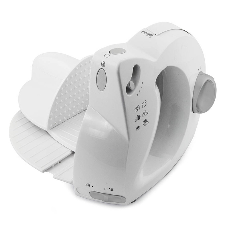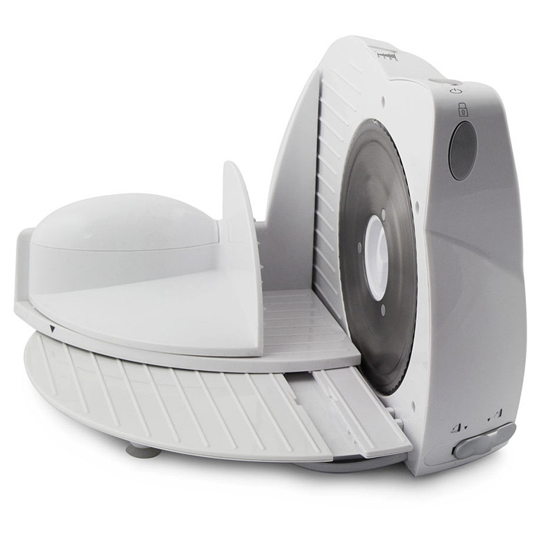 Vďaka širokému nastaveniu hrúbky plátku môžete s naším krájačom krájať chlieb, údeniny, syry, ovocie alebo zeleninu . Zariadenie má ergonomický tvar. Protišmykové prísavky zaisťujú stabilnú a pohodlnú obsluhu. Náhodná prevádzka krájača je nemožná vďaka bezpečnostnej poistke.