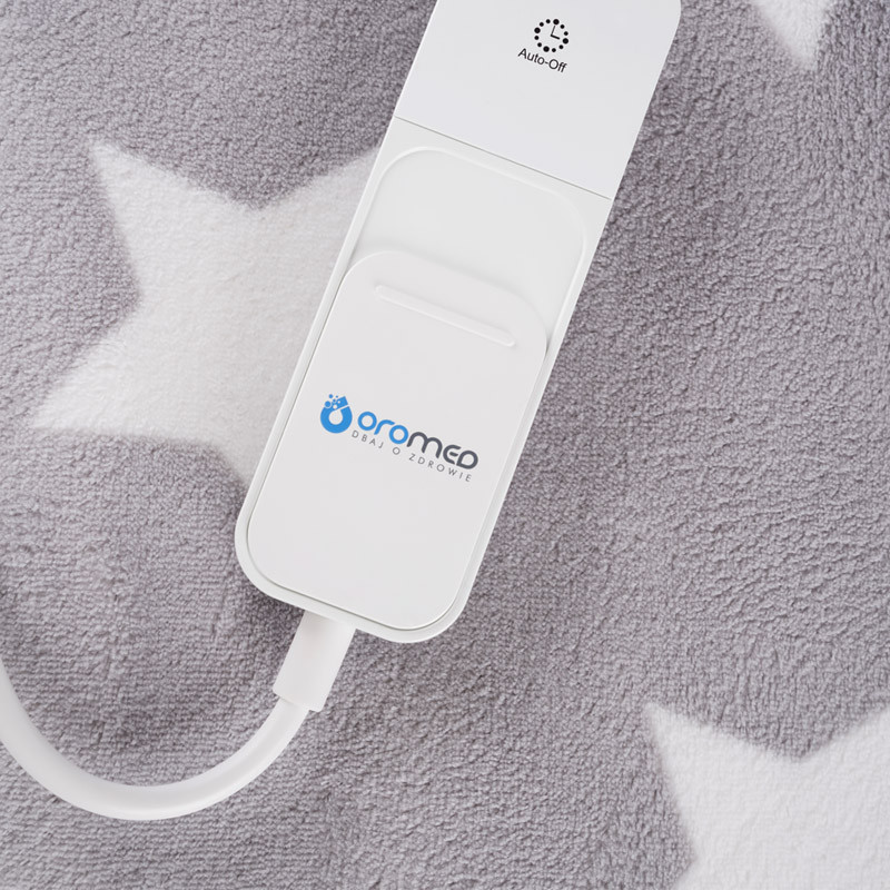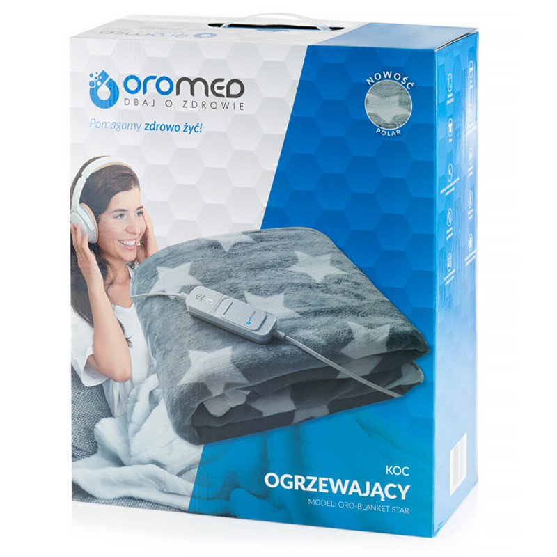 Elektrická prikrývka ORO-BLANKET STAR je dokonalým riešením na zimné dni, poskytuje teplo, pohodlie a úľavu chrbtice a reumatických bolestí. Vďaka veľkým rozmerom 130 x 180 cm a trom teplotným nastaveniam táto deka rovnomerne a príjemne zahreje celé vaše telo. Vyrobené z mäkkého fleecu, je praktické aj príjemné na dotyk. ORO-BLANKET STAR má odnímateľný kábel s diaľkovým ovládaním, ktorý značne uľahčuje používanie a možnosť prania po odpojení programátora zaisťuje hygienu a dlhodobé používanie.