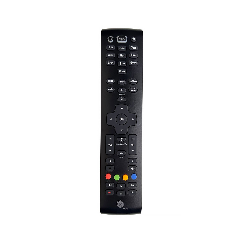 Značkový originálny diaľkový ovládač UPC PHILIPS Mediabox RC2094501/B, URC184001-00R00. Určený pre tieto modely: Cisco-8485DVB, 8685DVB, DC5012, DCI52, DCI62, DCI6221, DCR8111, Harman Kardon QTuner, HD MediaBox Recorder-CISCO HD, PACE DCR7111, PACE HD STB, THOMSON DCI52, UPC MediaBox HD Digital