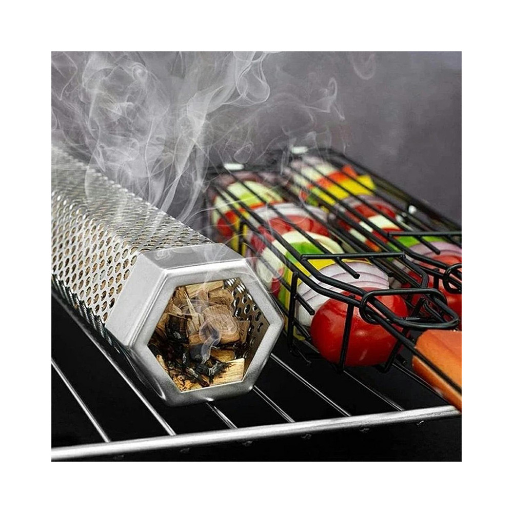 Uzavretý košík na grilovanie zeleniny, rýb a mäsa. Perfektná pomôcka pre všetkých nadšencov grilovania. Vďaka špeciálnemu nepriľnavému povrchu sa jedlo počas grilovania neprilepí na košík. Široké otvory umožňujú voľnú cirkuláciu vzduchu a dôkladné grilovanie. Dlhá rukoväť umožňuje pohodlné otáčanie jedla bez rizika popálenia.