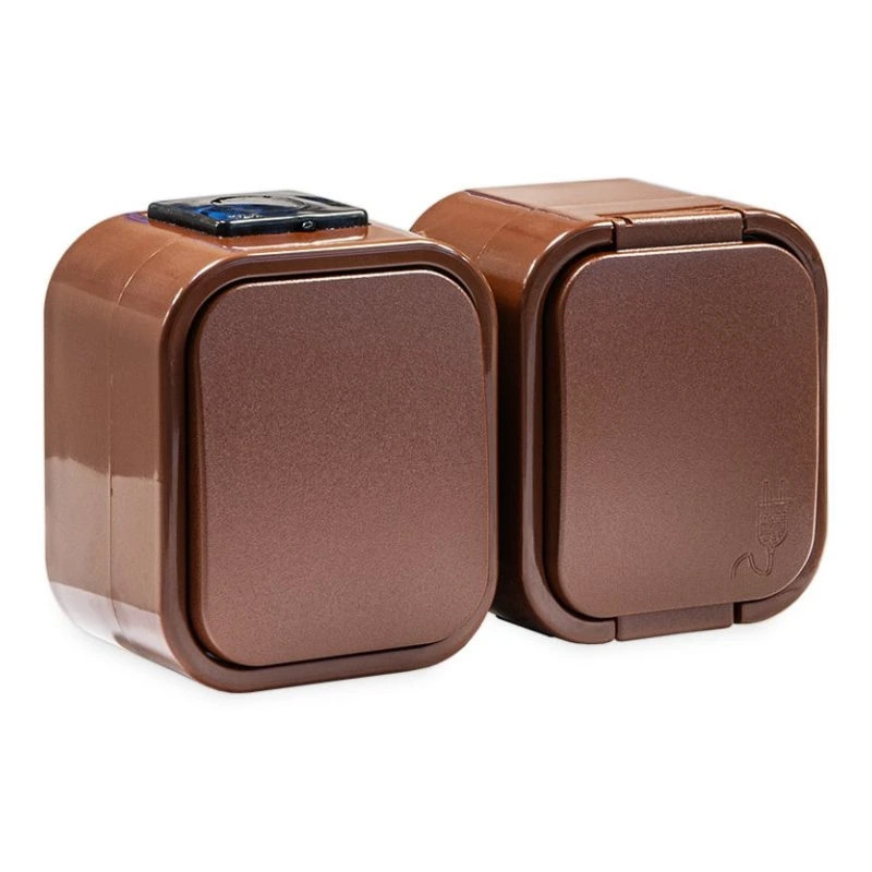 Jednozásuvka+vypínač VDT IP54 TIMEX GWN-B2 hnedá