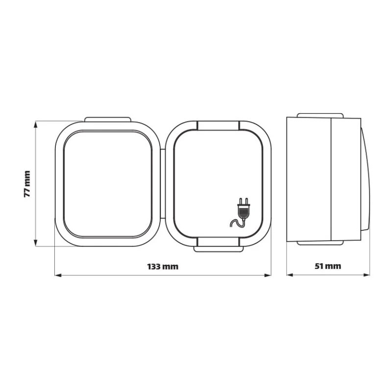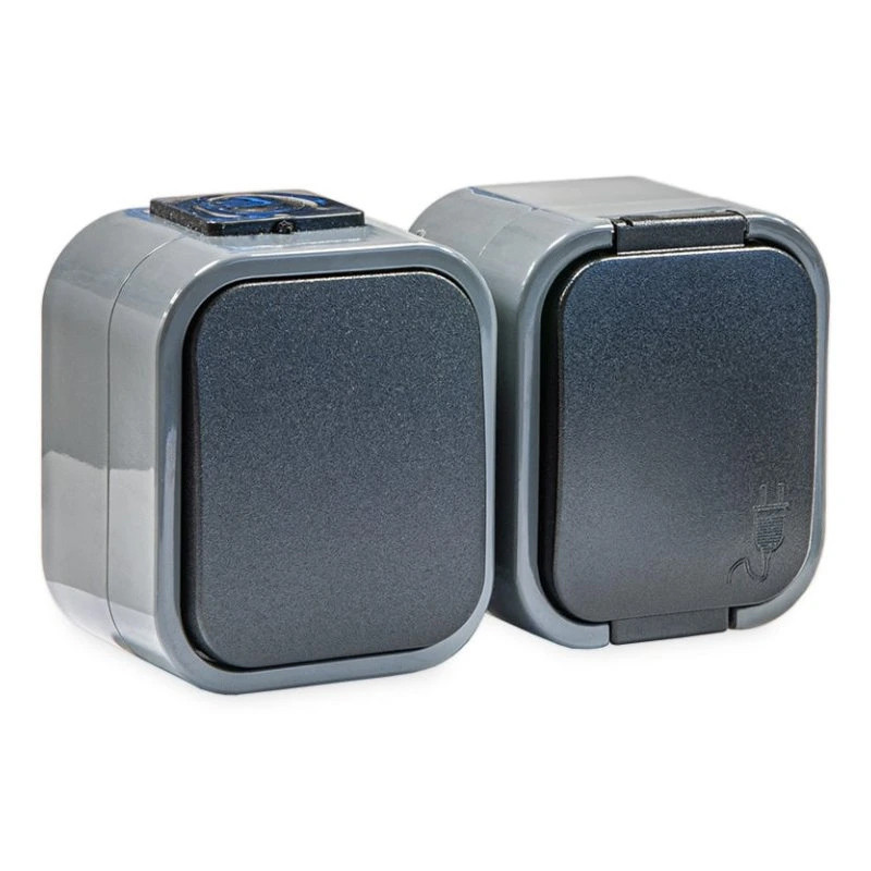 Jednozásuvka+vypínač VDT IP54 TIMEX GWN-B2 čierno-sivá