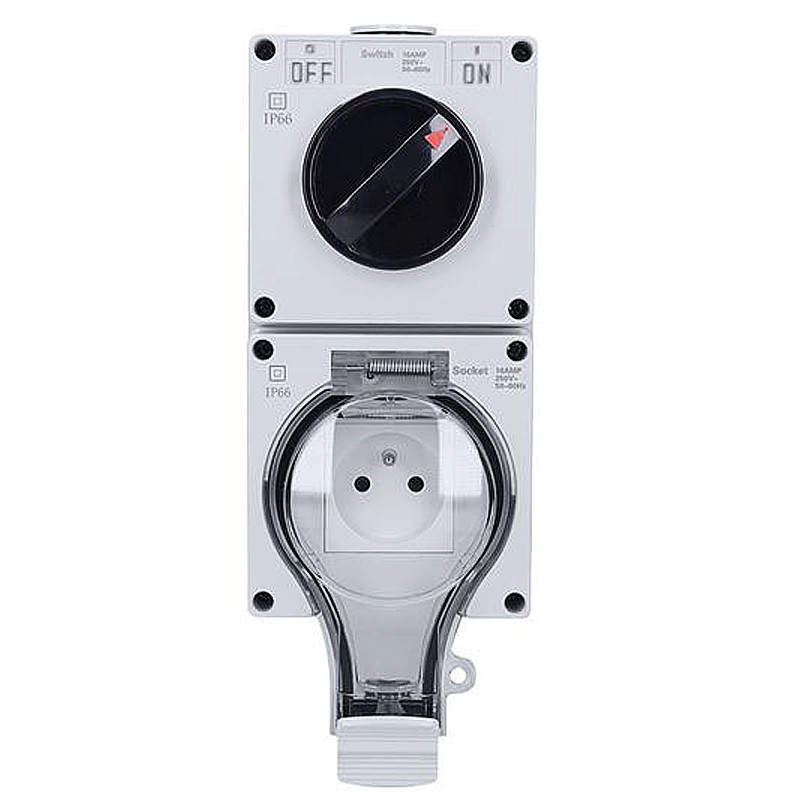 Integrovaný vypínač umožňuje ľahké ovládanie elektrického pripojenia, kedy kábel zostáva trvalo zapojený a zásuvka sa ovláda priamo vypínačom. Montáž zásuvky je jednoduchá vďaka priloženému príslušenstvu, vrátane montážnych skrutiek, hmoždiniek, držiakov a vodotesných zátok. Zadný box je možné pripevniť pomocou dvoch metód, ktoré umožňujú prispôsobenie rôznym potrebám.