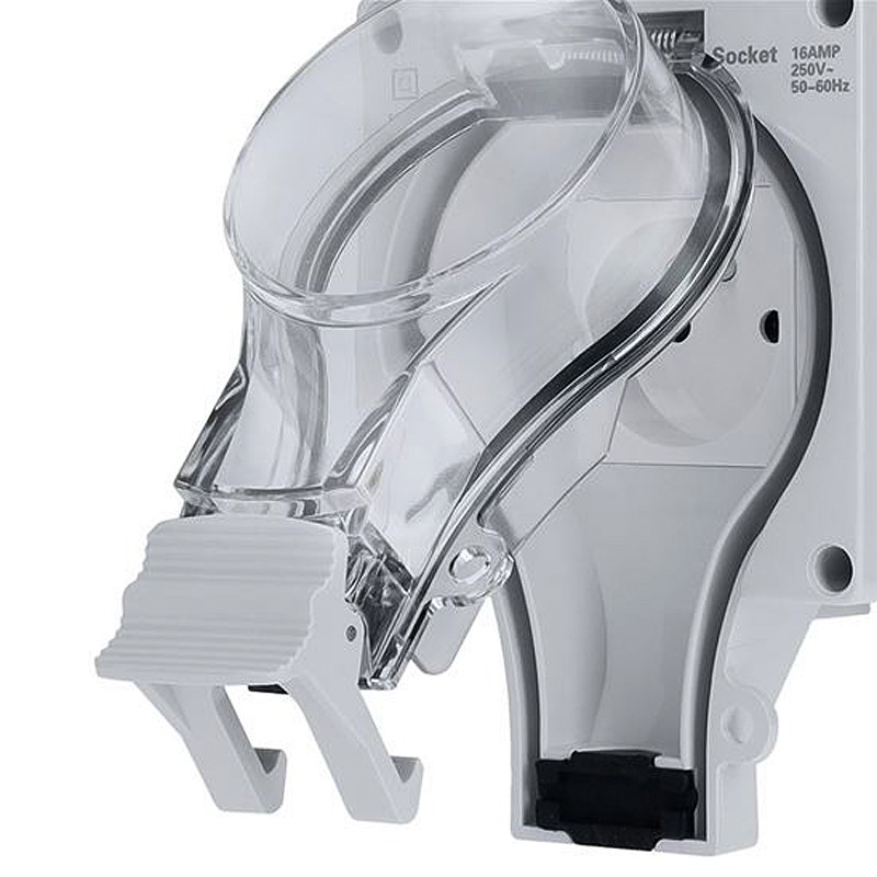Priehľadné veko zásuvky je možné uzamknúť visiacim zámkom, čo chráni proti nechcenej manipulácii a zvyšuje bezpečnosť. Gumové tesnenie zaisťuje dokonalé utesnenie proti vode a prachu. Konštrukcia je navrhnutá tak, aby odolala intenzívnym klimatickým podmienkam, čím zaisťuje dlhodobú spoľahlivosť a bezpečnosť pri používaní.