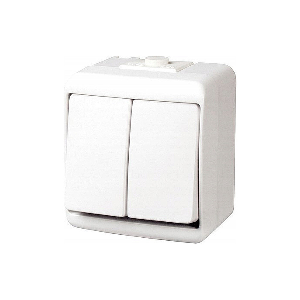 Dvojitý spínač vybavený 2 tlačidlami, určený pre lustre (rozdelené na 2 zóny). Má možnosť zapnúť dve rôzne svetelné scény v miestnosti.