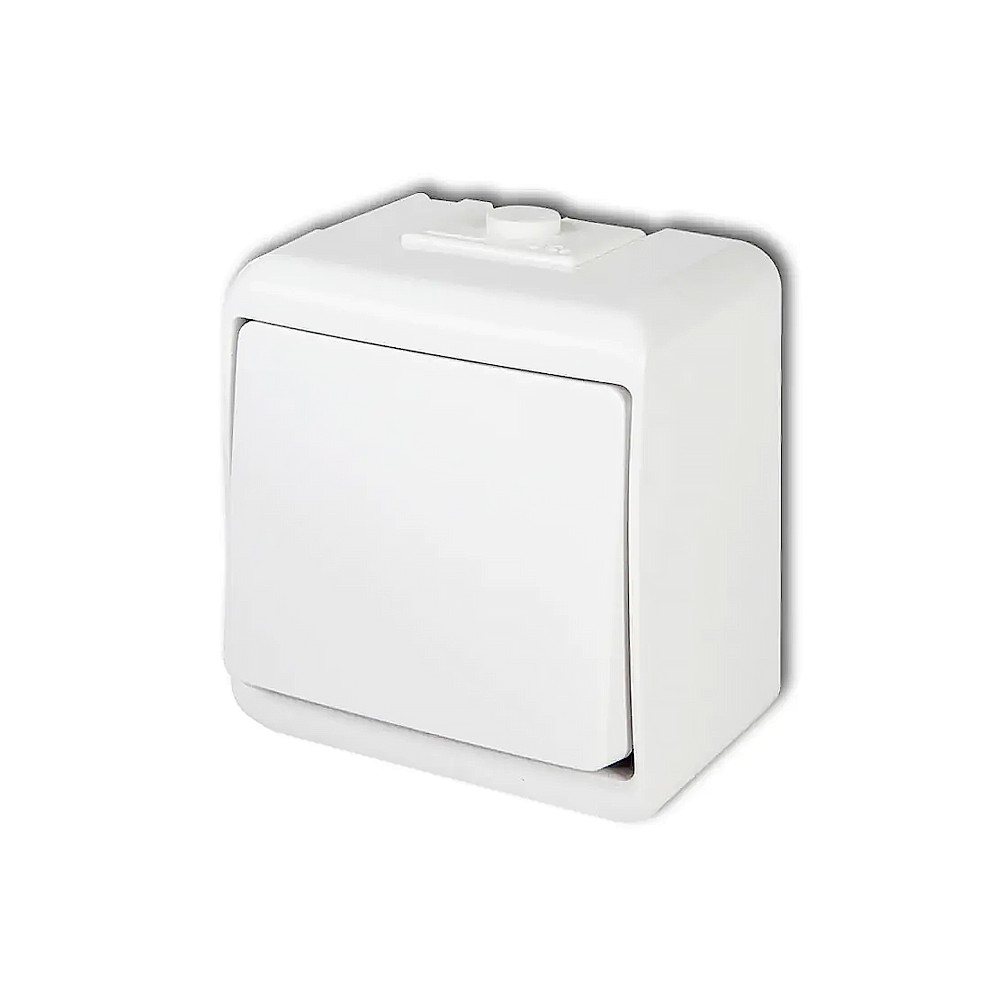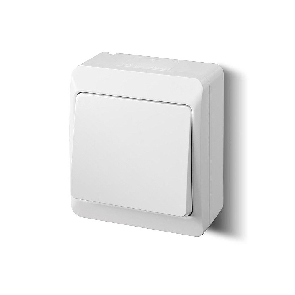 Vypínač č.6 (schodiskový) na povrch biely WHE-3 Junior Karlik - krytie: IP54 • menovité napätie: 230V AC • menovitý prúd: 10A • pripojenie vodičov: skrutkové