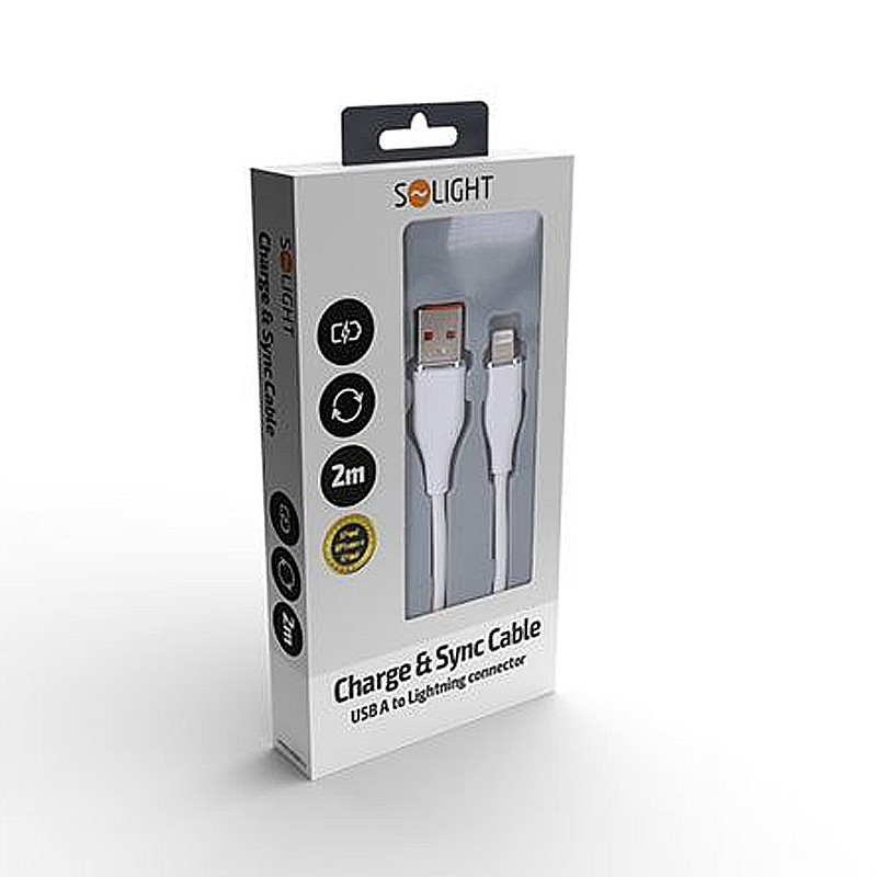 Kábel USBA-IPHONE 5< biely 2m 2A SOLIGHT SSC1502-S