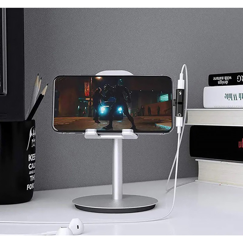 Lightning rozbočovač 2 v 1, kompatibilný s iPadom aj iPhone. Ideálny pre ľudí, ktorí chcú nabíjať svoje zariadenia a zároveň používať zapojené slúchadlá.