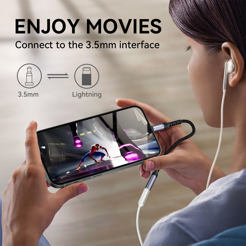 Tento adaptér Lightning na 3,5 mm audio možno použiť na pripojenie zariadení Lightning, ako sú iPhony a iPady, k pomocným zariadeniam, ako sú 3,5 mm slúchadlá, autorádiá, reproduktory a ďalšie pre hudbu a hovory. Môže pracovať so všetkými 3,5 mm slúchadlami, čo umožňuje priame ovládanie vrátane ovládania hlasitosti, volania, prehrávania hudby a ďalších funkcií. Pri používaní originálnych 3,5 mm slúchadiel Apple však nie je dostupné ovládanie priamo na linke.