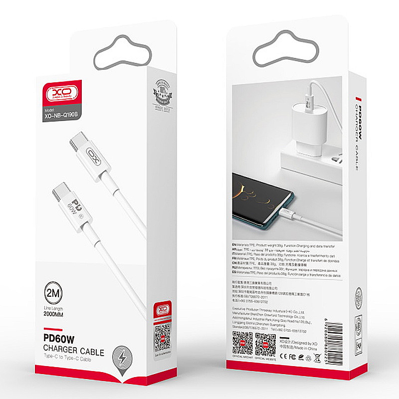 XO NB-Q190B PD je kábel vybavený konektormi USB-C a USB-C. Kábel bol navrhnutý tak, aby zabezpečil maximálne pohodlie pri každodennom používaní. Kábel vám umožní plne využiť maximálny výkon, s ktorým môžu kompatibilné zariadenia nabíjať.