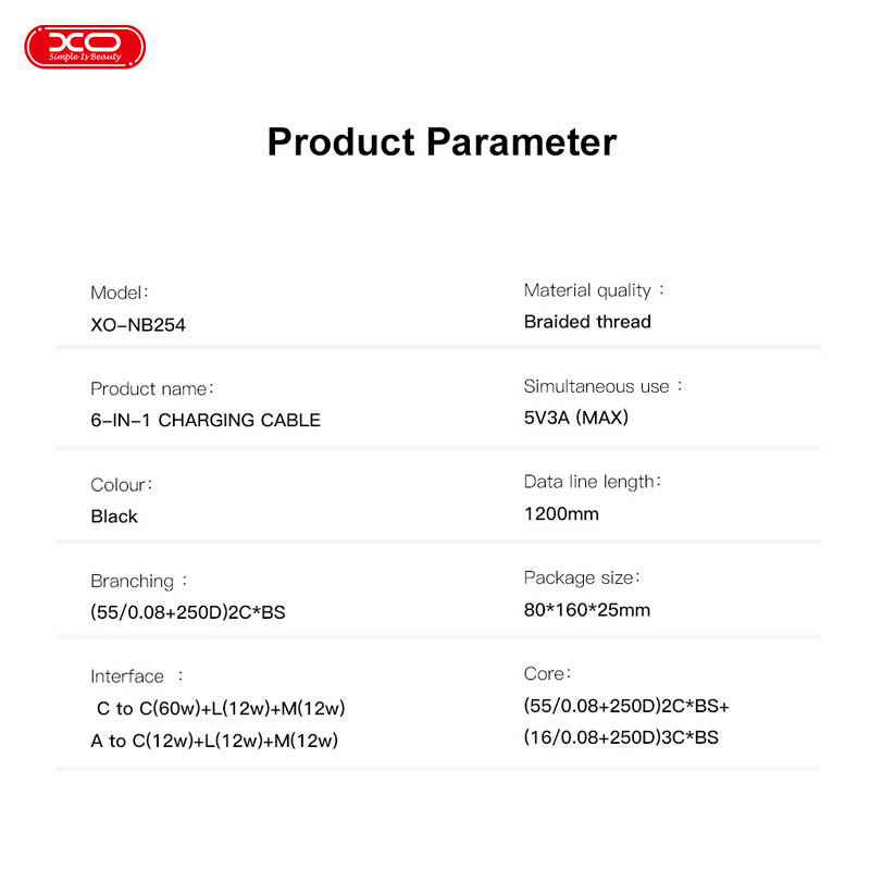 Predstavujeme 6v1, dokonalý multifunkčný nabíjací kábel navrhnutý pre vaše pohodlie. Vďaka veľkorysej dĺžke 1,2 metra a hmotnosti 61 gramov poskytuje flexibilitu a spoľahlivosť pre vaše potreby nabíjania. Je vybavený všestrannými rozhraniami vrátane C-C (60 W), L (12 W) a M (12 W), ako aj A-C (12 W), L (12 W) a M (12 W), a ponúka maximálnu kompatibilitu pre vaše zariadenia.