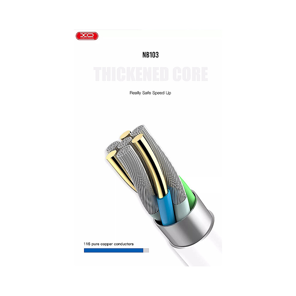 XO NB103 je kábel vybavený 8-pinovým konektorom. Kábel bol navrhnutý tak, aby poskytoval čo najväčší komfort pri každodennom používaní. Vyrobený z flexibilného silikónu pre zaistenie čo najdlhšej životnosti.