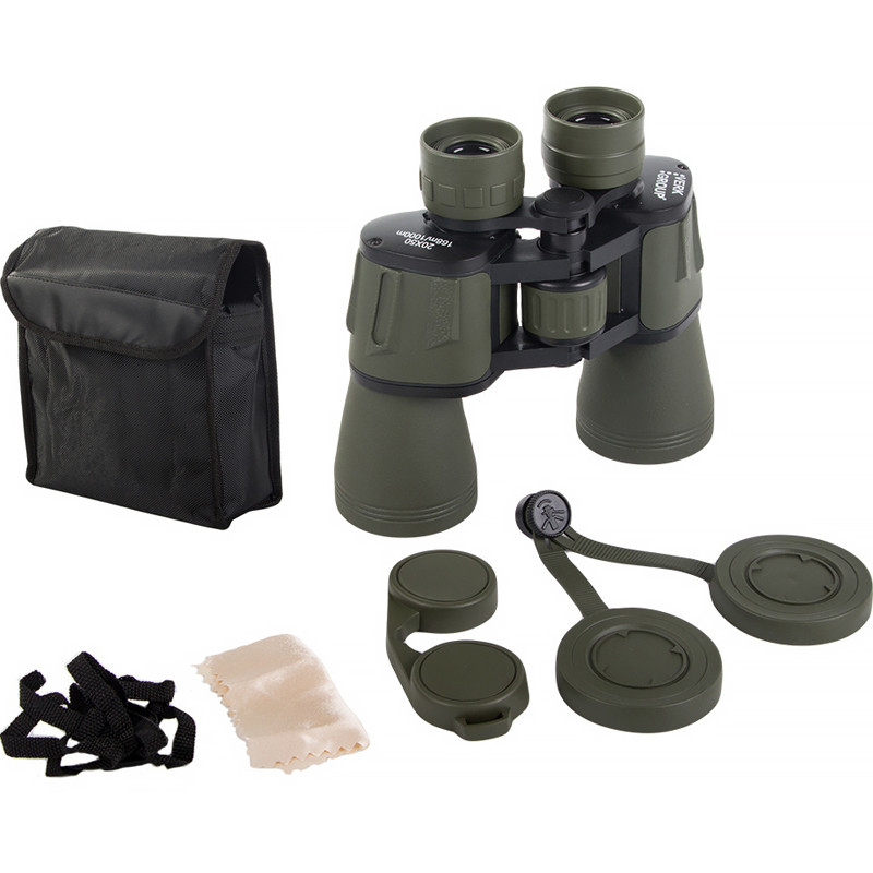 Vďaka protišmykovej úprave skvele padne do ruky, zabraňuje otrasom a zaisťuje pevné uchopenie. Veľké šošovky s priemerom 50 mm poskytujú najvyššiu kvalitu obrazu. Ďalekohľad má vizuálnu korekciu v pravom okulári a nastavenie zaostrenia umiestnené na mostíku, medzi tubusmi.