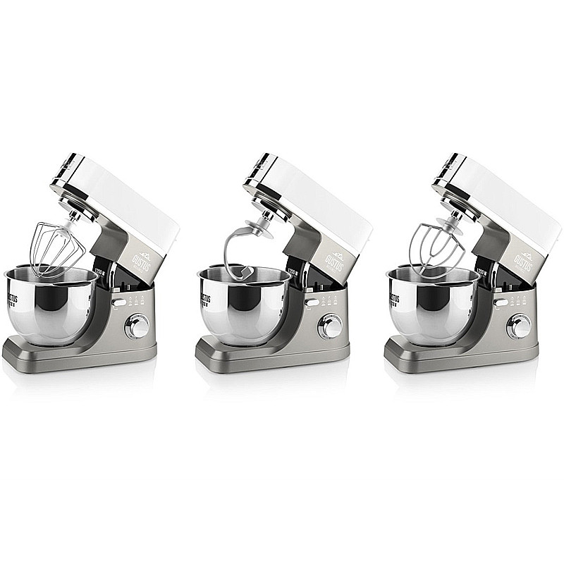 Multifunkčný kuchynský robot s kovovými prevodovými kolieskami, 1200 W výkonným motorom, planetárnym systémom miešania a bohatým príslušenstvom.