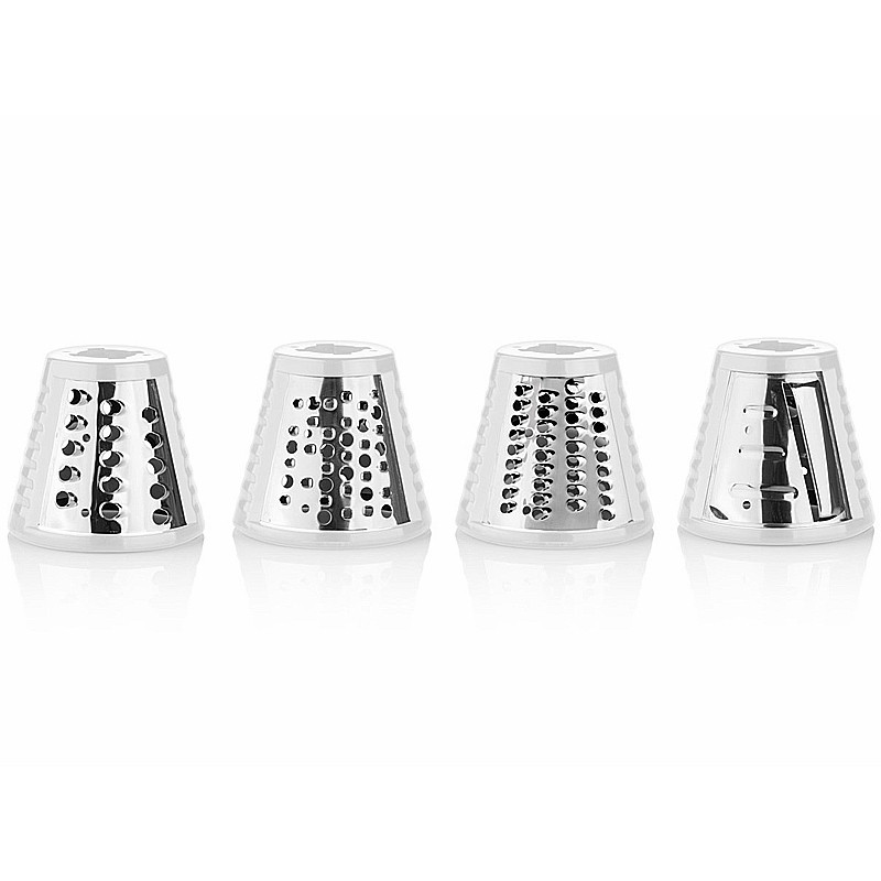 Nesmieme zabudnúť na strúhací nadstavec so 4 strúhadlami, ktorý vám uľahčí strúhanie zeleniny, syrov či staršieho pečiva na strúhanku. Príprava obľúbených placiek alebo šalátu coleslaw tak bude takmer bez práce.