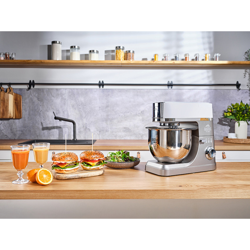 Kuchynský robot ETA Gustus IV Maximus s výkonným 1200 W motorom je ako stvorený pre prácu v kuchyni. Pochváliť sa môže stabilizátorom, ktorý udrží nastavené otáčky aj pri veľkom zaťažení a poháňajú ho odolné kovové prevodové kolieska, vďaka ktorým s vami bude naozaj dlho.