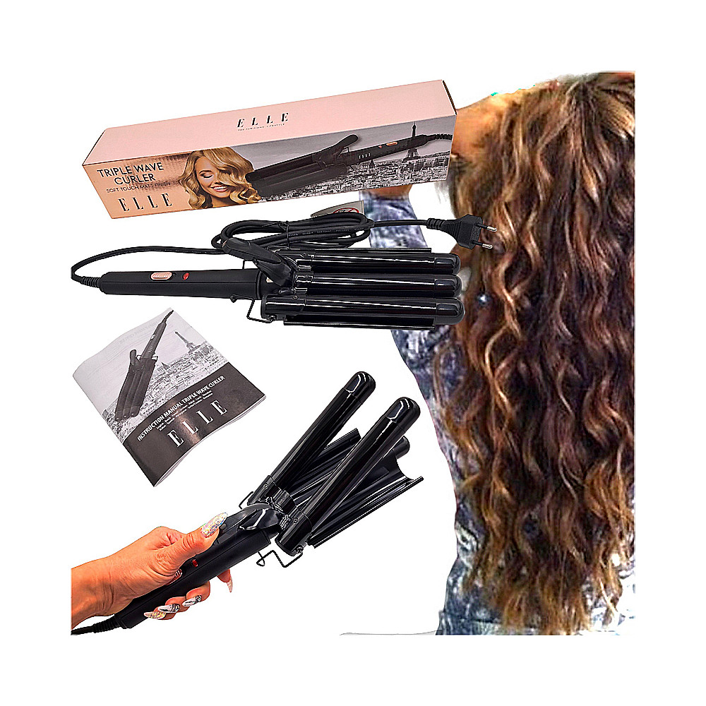 Krepovačka na vlasy ELLE Triple Wave Curler čierna 85W