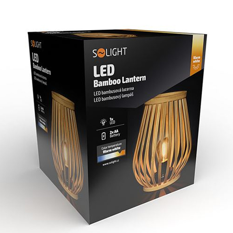 Dekoratívny bambusový lampáš s LED žiarovkou • farba svetla: teplá biela • napájanie: 2xAA • svetlé drevo • výška: 20cm