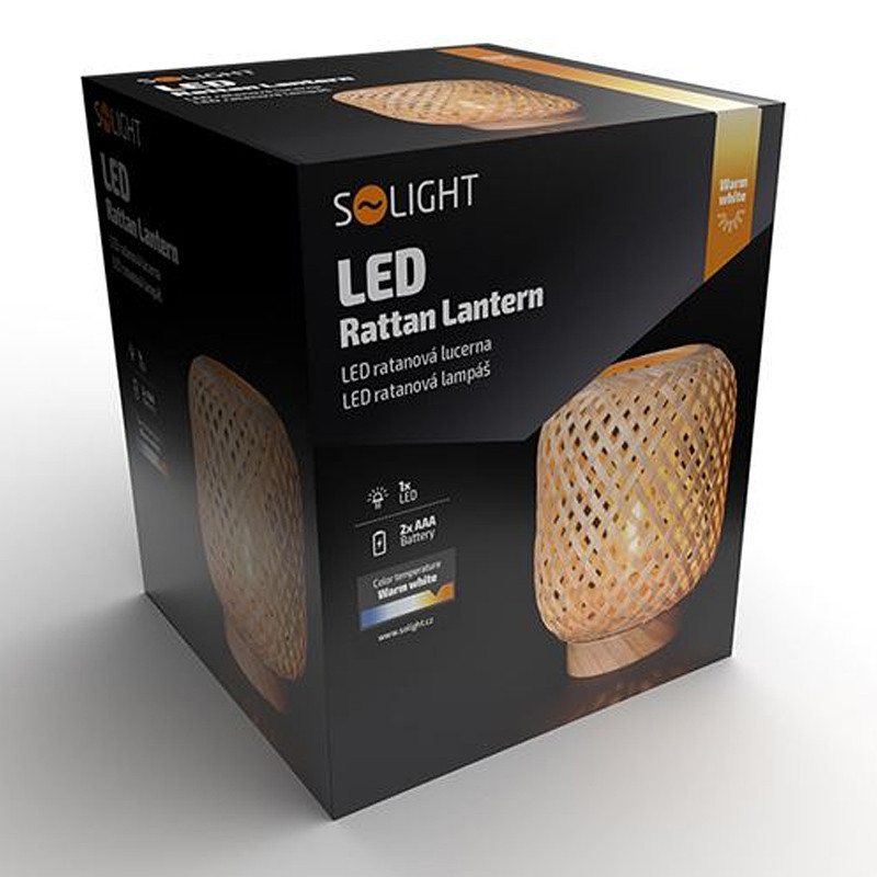 Dekoratívny ratanový lampáš s LED žiarovkou • farba svetla: teplá biela • napájanie: 2xAAA • svetlé drevo • výška: 19cm