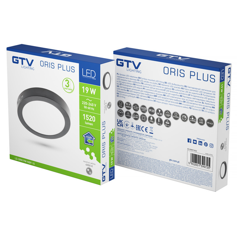 Panel LED prisadený GTV ORIS PLUS 19W 4000K okrúhly čierny 1520lm IP20