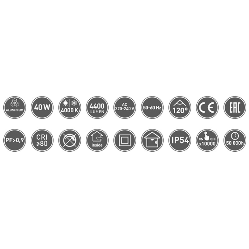 Stropný LED panel 60x60 cm biely - výkon: 40 W • svetelný tok: 4400 lm • neutrálne svetlo (4000K) • stmievateľné: nie • materiál: hliník • napätie: 220-240 V • ochrana: IP54
