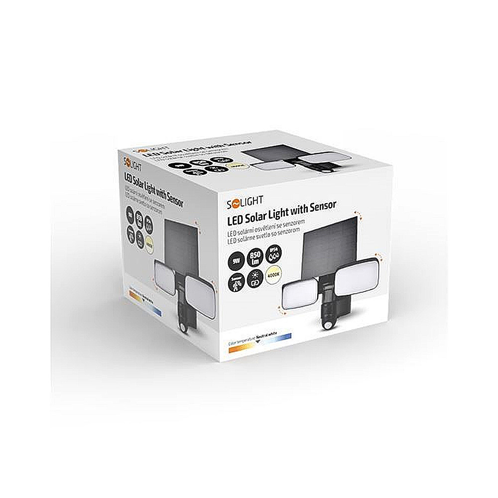 Reflektor LED so solárnym panelom+PIR 9W 850lm 4000K SOLIGHT WO7203