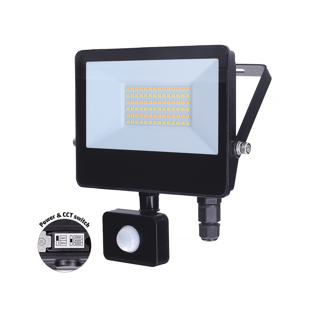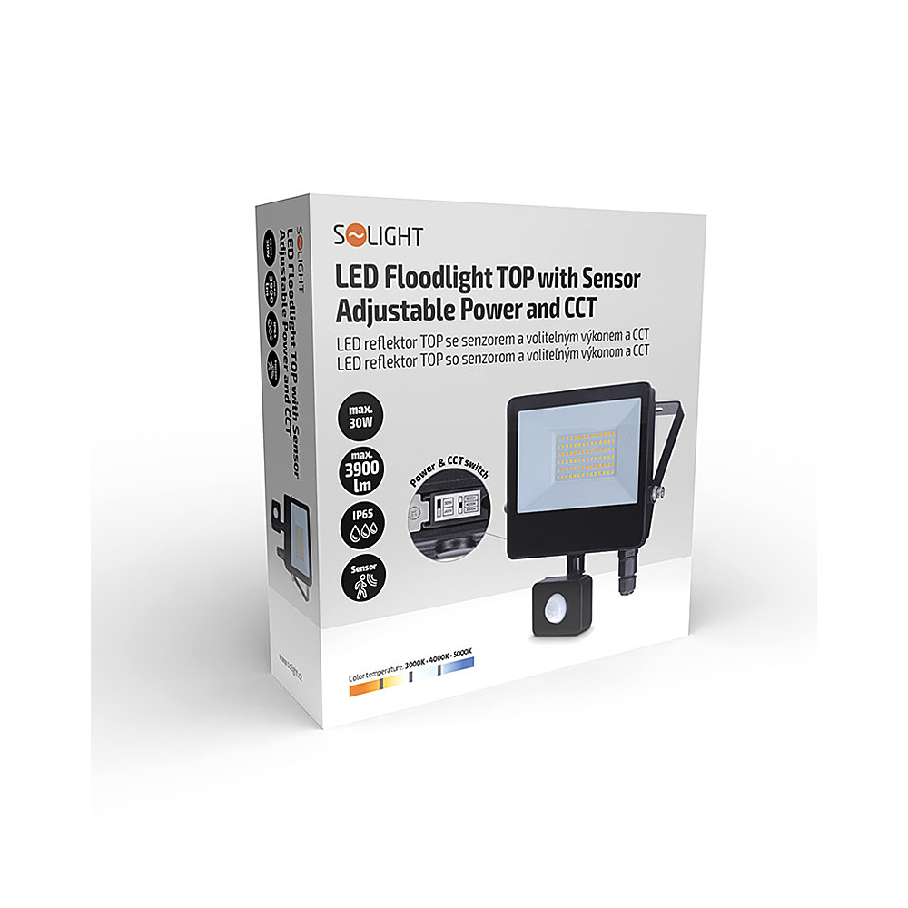 Reflektor LED 30W+PIR CCT BK SOLIGHT WM-30WS-T 20-30W/CCT BK 2600-3900lm IP65 rýchlokonektor