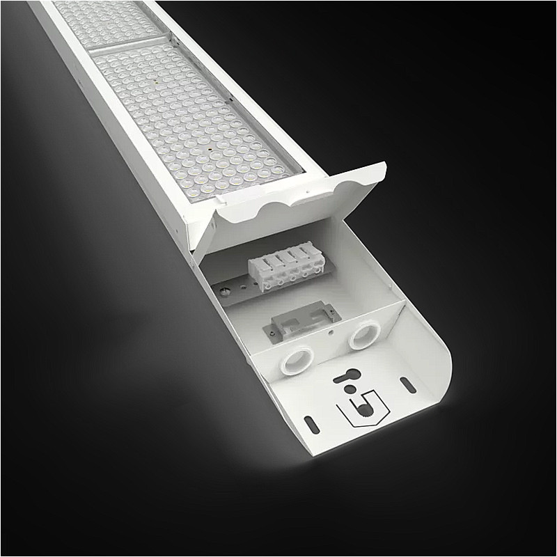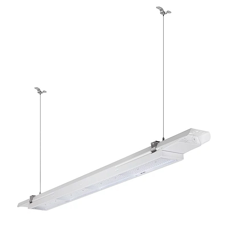Výkonné lineárne LED svietidlo pre nízke stropy, dĺžka 150 cm ‒ výkon: 140 W • svetelný tok: 22 000 lm • farba svetla: Neutrálna biela (4000K) • uhol lúča: 90° • ochrana: IP23 • napätie: 220-240V • stmievateľné: Áno (DALI2) • farba: biela • dĺžka: 1527 mm • výška: 65 mm • šírka: 115 mm