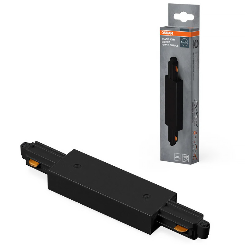 Príslušenstvo pre koľajnicové svietidlá - konektor napájania koľajnicového svietidla, stredový, čierny. • svietidlá, lišty, konektory a spojky rady Tracklight od firmy Osram aj Ledvance sú vzájomne plne kompatibilné.