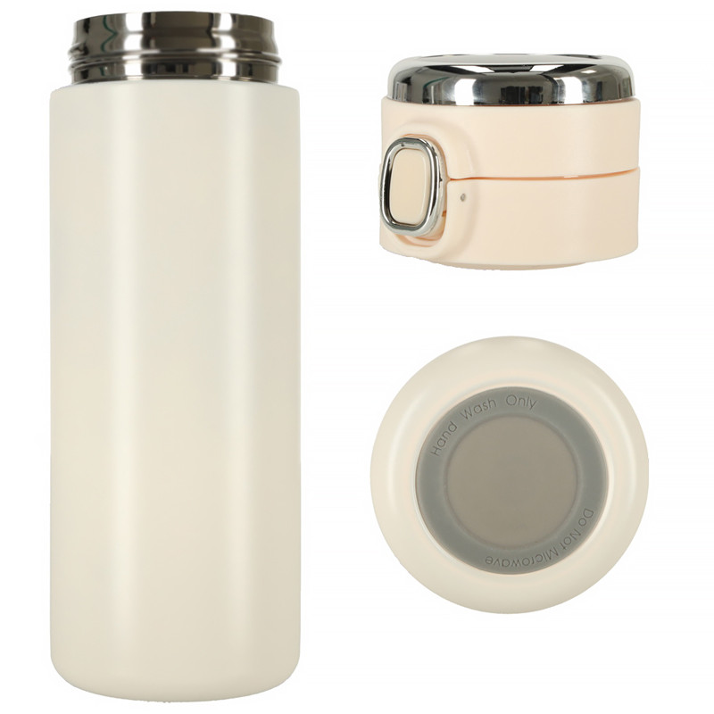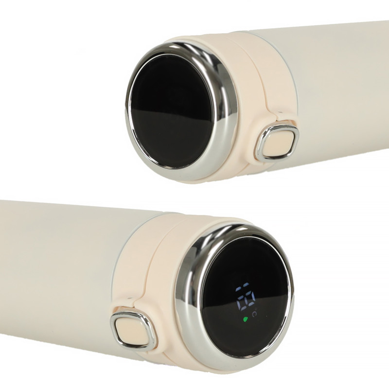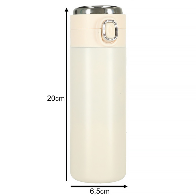 Termo hrnček s LED displejom zobrazujúcim teplotu. Udrží teplotu vášho nápoja až niekoľko hodín. Otvára sa tlačidlom. Má nevymeniteľnú batériu. Kapacita: 420 ml. Farba: béžová.