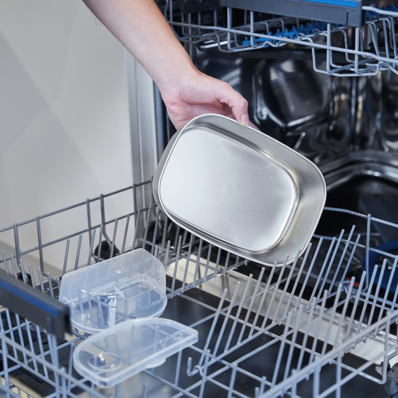 Obedár sa skladá z dvoch vyberateľných nádob, ktoré sa dajú ľahko čistiť – dokonca aj v umývačke riadu. Hlavná nádoba s objemom 1,1 litra a sekundárna nádoba s objemom 0,5 litra s vekom.