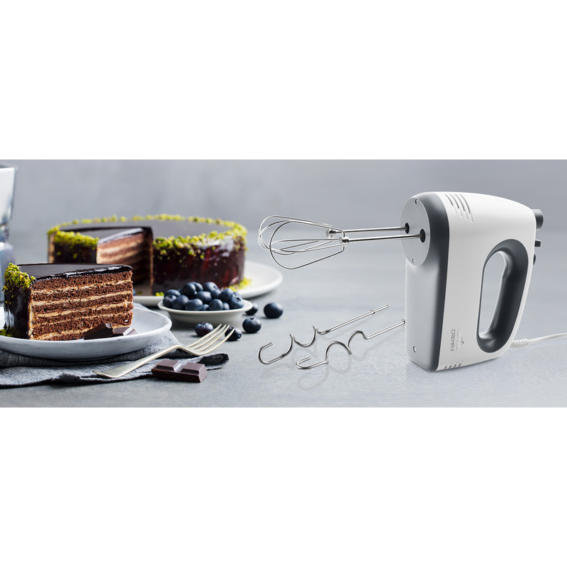Nechajte šľahač pracovať za vás a vložte ho do praktického stojančeka s nerezovou 3,6 l misou. So šľahačom ETA Crema II ľahko vyšľaháte šľahačku, sneh, ľahšie cestá aj tortové krémy.
