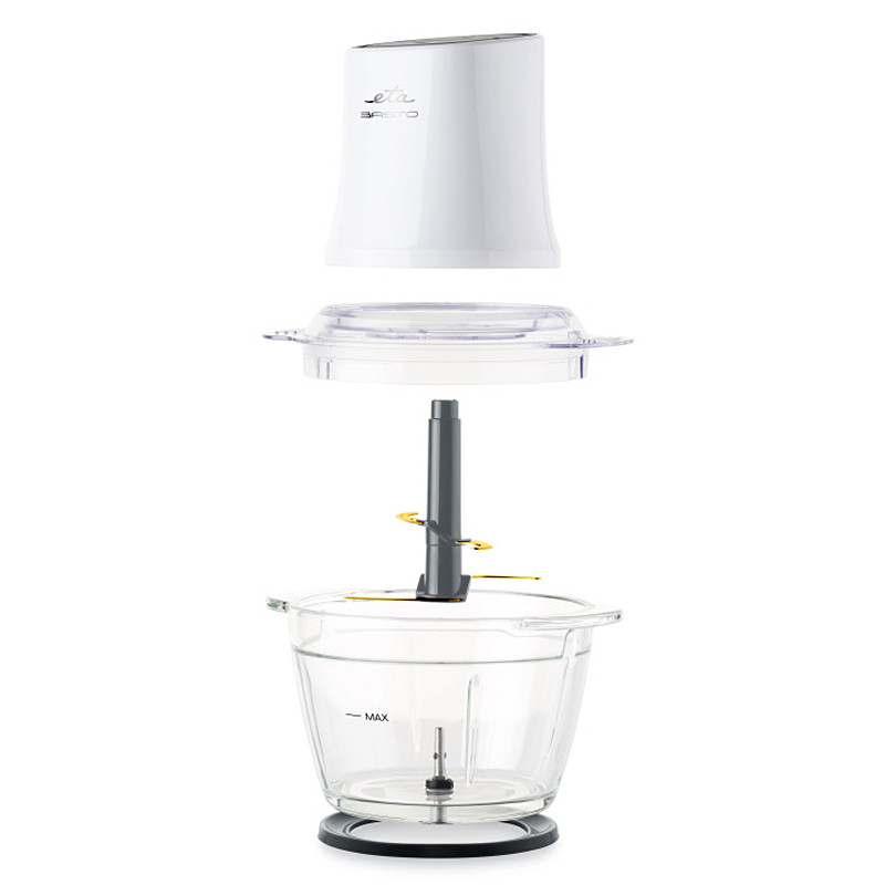 Sekáčik ETA Basto II bude pr vás v kuchyni skutočne praktickým pomocníkom. Rýchlo a účinne rozseká, rozdrví a rozmixuje suroviny na veľmi jemnú konzistenciu. Vďaka extrémne ostrému titánovému štvorramennému nožu seká a drví potraviny až na veľmi jemnú konzistenciu. Orechy, bylinky, ovocie aj zeleninu zvládne nasekať počas pár sekúnd.