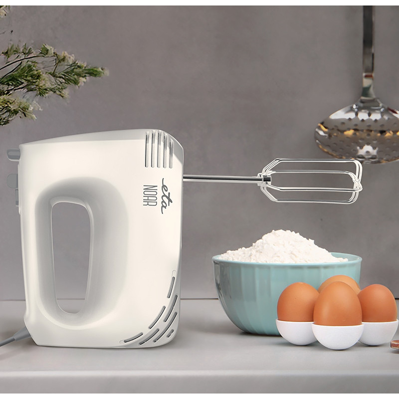 Ručný šľahač ETA Noar II vám bude skvelým parťákom pri pečení aj varení. Zaberie minimum miesta, ľahko sa ovláda a súčasťou balenia má 2 šľahacie metly a 2 hnetacie háky. Vďaka tomu s ním ľahko vyšľaháte šľahačku, sneh, pripravíte cesto na palacinky či dokonalý tortový krém. A poradí si aj so zemiakovou kašou či nátierkami.