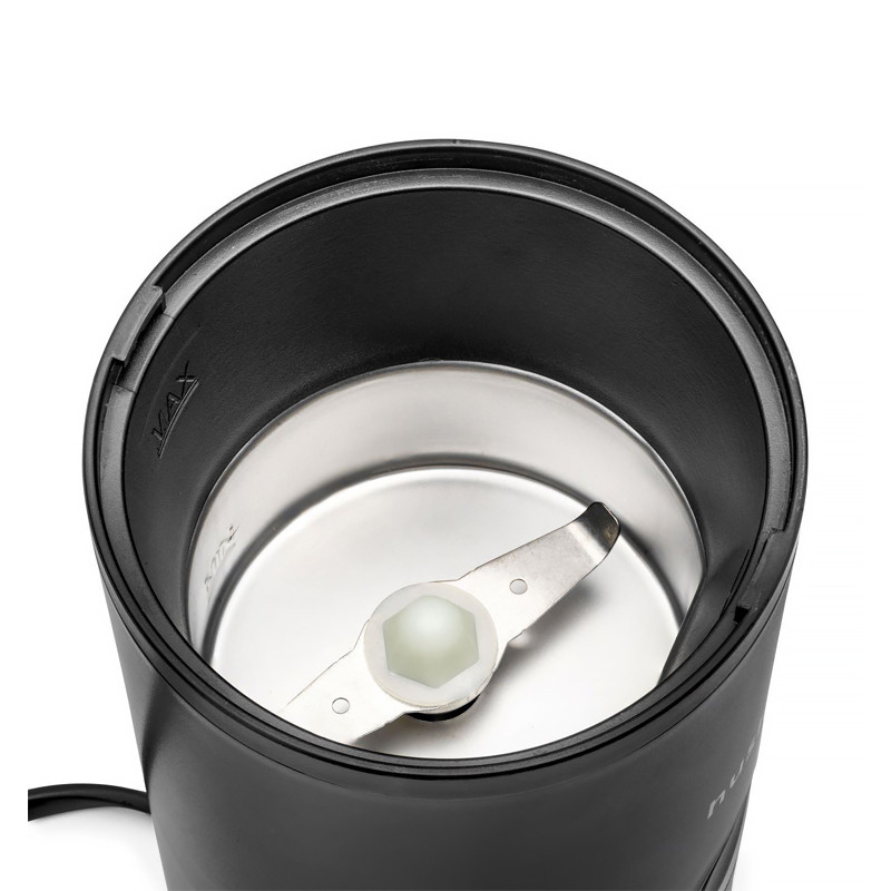 Odmerná nádoba – Vo vnútri elektrického mlynčeka nájdete označenia, ktoré ukazujú úroveň kávy (MIN/MAX), čo uľahčuje meranie správneho množstva kávových zrniek.