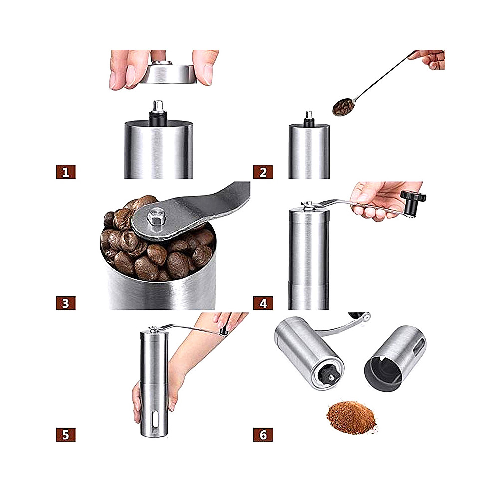 - Ručný mlynček na kávu s nastaviteľnými mlecími kameňmi.