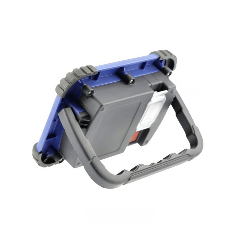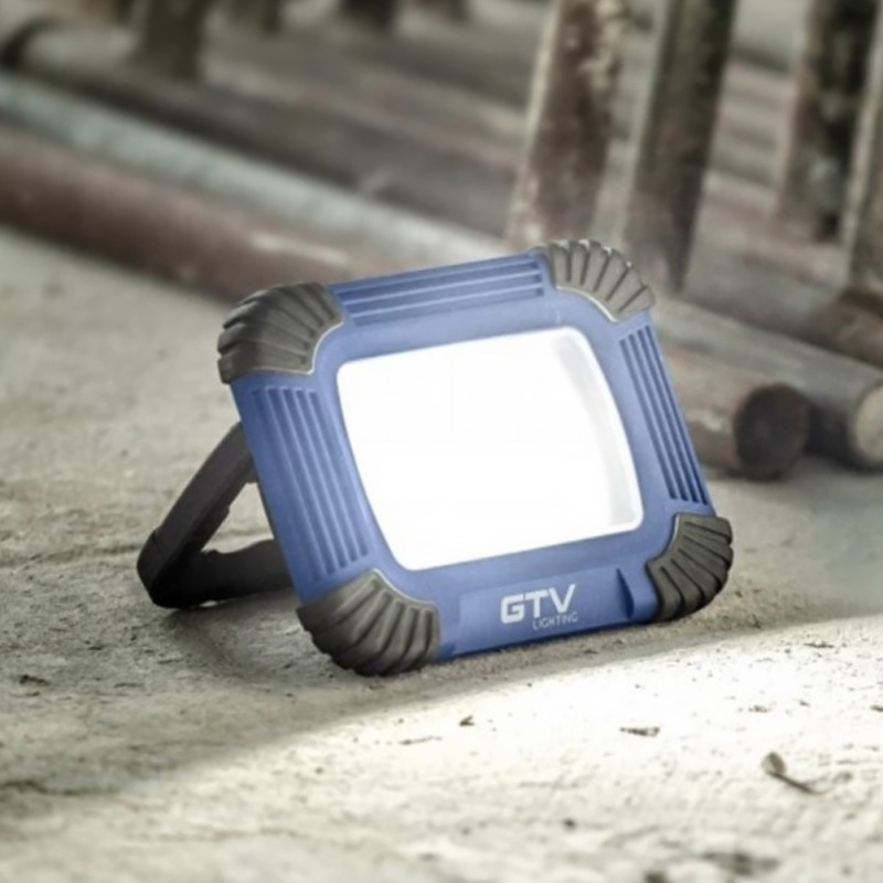 Vonkajší prenosný LED reflektor GTV je zhotovený z hliníkového odliatku a je krytý odolnou modrou gumou proti poškodeniu.. Hlavnou výhodou je to, že sa dá využiť aj bez pripojenia k elektrickému prúdu po predchádzajúcom nabití. LED reflektor je vybavený vypínačom, ktorým môžeme prepínať dve intenzity svietenia a preblikávania. Svietidlo obsahuje Li-Ion batériu 7,4 V 2200mAh. Súčasťou svietidla je aj POWER BANKA z ktorej môžete cez USB konektor dobíjať svoje mobilné zariadenie – telefón a pod.