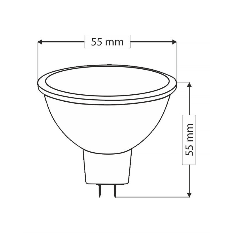 LED žiarovka s päticou MR16 pre 230V!, s výkonom 7W (náhrada za klasickú 53W žiarovku). Poskytuje teplé biele svetlo 2700K. Použité moderné technológie a materiály zaručujú dlhú životnosť až 30.000 hodín. Pri zapnutí je okamžite k dispozícii plný svetelný výkon žiarovky bez jej zahrievania.