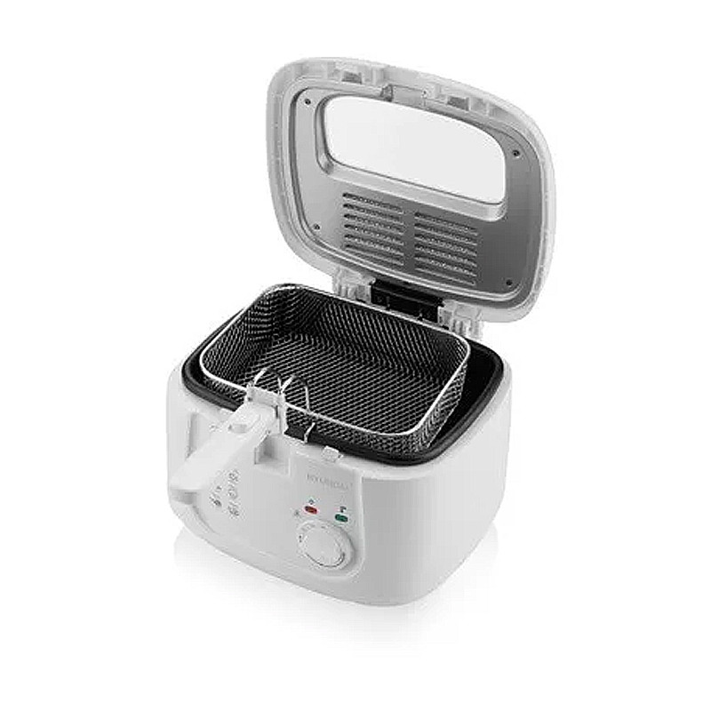 Príkon fritézy: 1800 W • maximálna náplň oleja: 2.5L • typ fritovania: olej • svetelná signalizácia • regulácia teploty • objem fritovacieho koša: 2.5L • umývateľné odoberateľné veko s okienkom • farba: biela