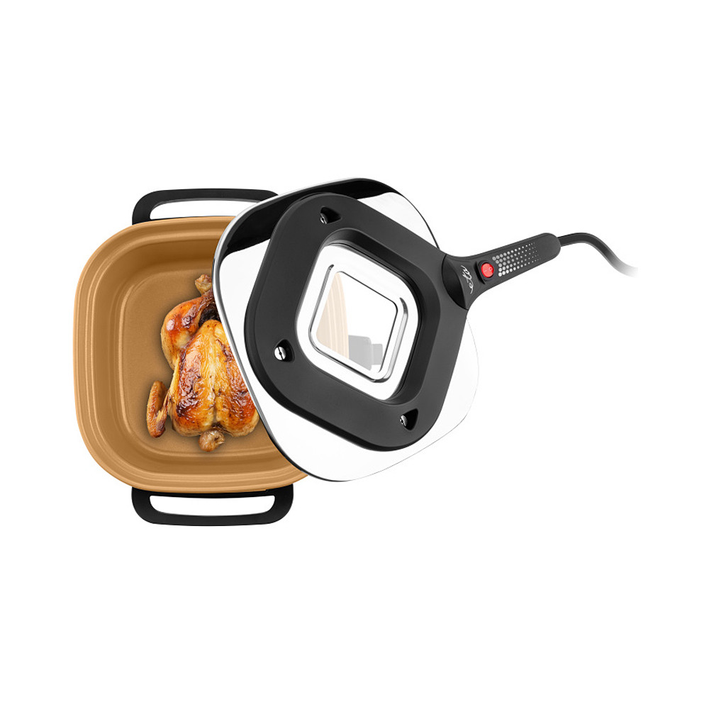 ETA Pečenka využíva špeciálne navrhnuté vyhrievacie teleso s príkonom len 475 W, umiestnené v hornej časti veka. Vďaka tomu dochádza k rovnomernému rozloženiu tepla a každá porcia je perfektne prepečená bez nutnosti jedlo otáčať. V porovnaní s klasickou rúrou spotrebuje až o 80 % menej energie, čo sa pozitívne odrazí na vašich účtoch za elektrinu. Praktické veko je vybavené skleneným priezorom na jednoduchú kontrolu pripravovaného jedla a nechýbajú ani ventilačné otvory na optimálny odvod pary.