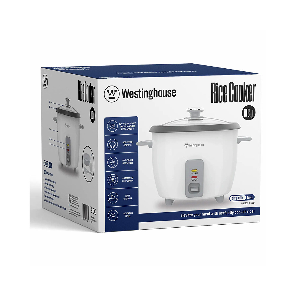 Elektrický varič ryže s objemom 2,5L určený na varenie ryže a podobných obilnín. Poskytuje automatickú reguláciu teploty a časované cykly varenia pre zjednodušenie prípravy jedál. Vhodný na každodenné domáce použitie, varenie po dávkach a prípravu kaše alebo dusených jedál. Kompaktný stolový spotrebič kompatibilný so štandardnými elektrickými zásuvkami.