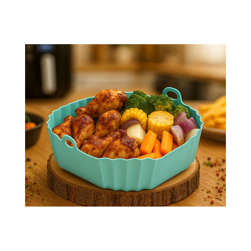 Vložka do fritézy je vyrobená z vysoko kvalitného silikónu, ktorý je netoxický, bez BPA a bezpečný pre vaše zdravie. Silikón je v súlade s FDA, takže je bezpečný pre potraviny, čo zaručuje, že neovplyvní chuť ani kvalitu vašich pripravovaných jedál.