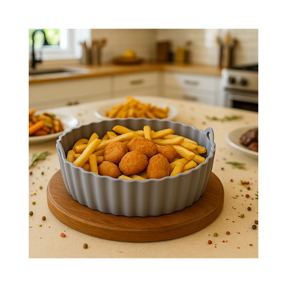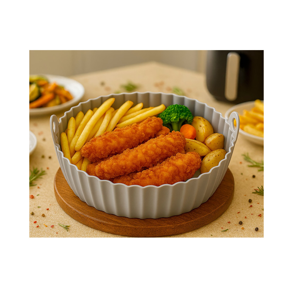 Vložka fritézy je vyrobená zo silikónu, ktorý je úplne bezpečný a schválený pre kontakt s potravinami. Vďaka spĺňaniu požiadaviek FDA a bez obsahu BPA si môžete byť istí, že materiál je netoxický a neovplyvní chuť ani kvalitu vašich jedál.