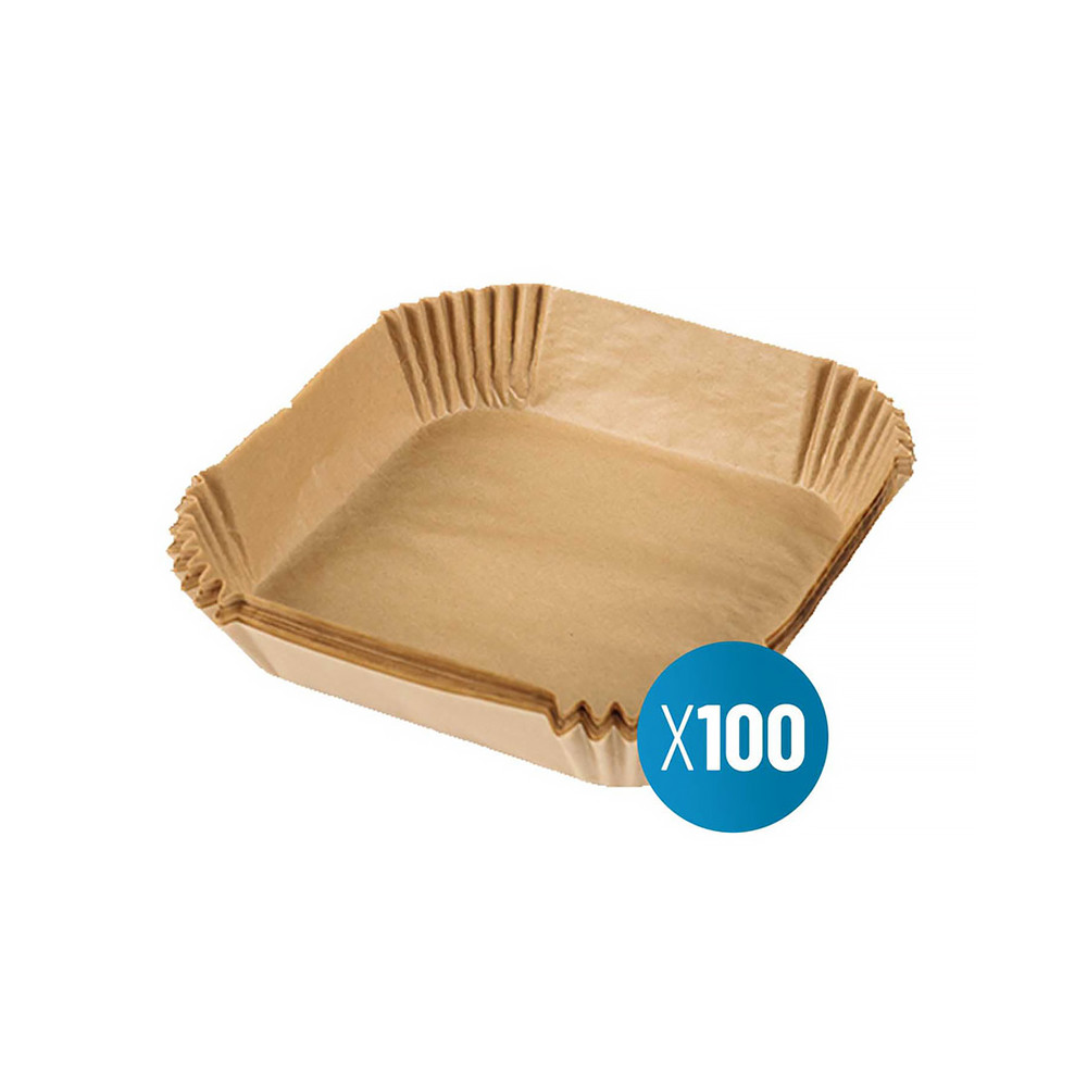 Papierové vložky do fritéz (100ks) ‒ vodotesné • olejotesné • jedlo sa nane nelepí • silikónom potiahnutý papier • štvorcový tvar • materiál je bezpečný pre ľudské zdravie pri kontakte s potravinami