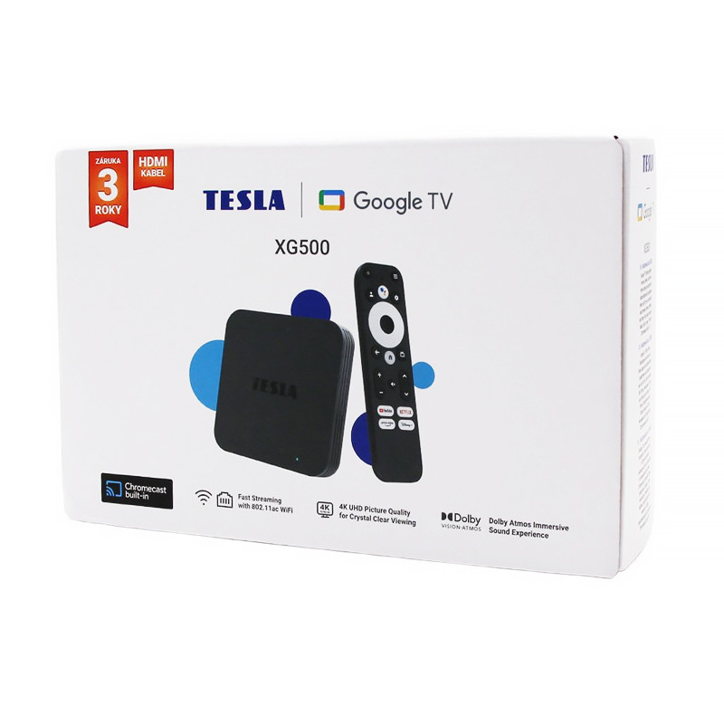 Multimediálne centrum Tesla MediaBox XG500 s operačným systémom Google TV, s rozlíšením obrazu v štandarde Ultra HD 4K (60 Hz) a podporou HDR zabezpečí skvelú zábavu vo vašej domácnosti.