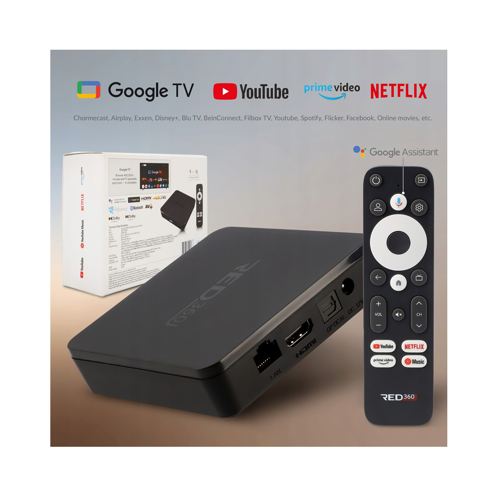 4K IP Streaming Box s Google TV OS - Rozšírte svoj televízor o plnú funkčnosť Smart TV. Toto pokročilé zariadenie kombinuje výkon štvorjadrového procesora, podporu obrazu 4K Ultra HD a operačný systém Android TV 12 s certifikáciou Google TV, čo ponúka rýchly prístup k tisícom aplikácií a streamovacích platforiem, ako sú Netflix, YouTube, Prime Video, Disney+ a mnoho ďalších.