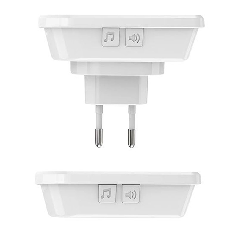 - jeden zvonček zapojený do zásuvky a druhý prenosný na batérie: