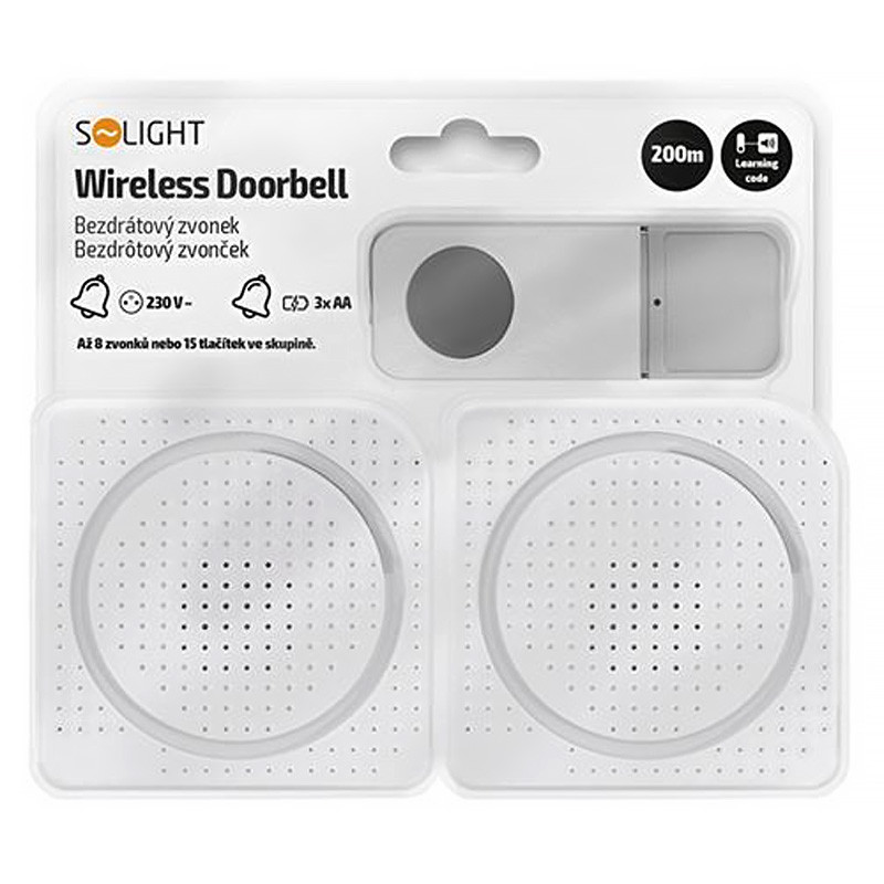 Zvonček bezdrôtový 230V+bat. 200m SOLIGHT 1L67AD 2xRING+1xTLAČ