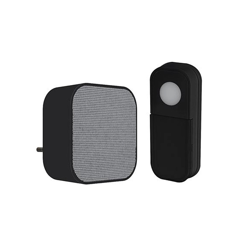 Bezdrôtový zvonček, do zásuvky - dosah: 180m • čierny • LED indikácia zvonenia na zvončeku aj tlačidle • tlačidlo s menovkou • nastavenie hlasitosti • funkcia Learning code • napájanie: tlačidlo: 1x CR2032 batéria (pribalená), zvonček: AC 230V (do zásuvky)