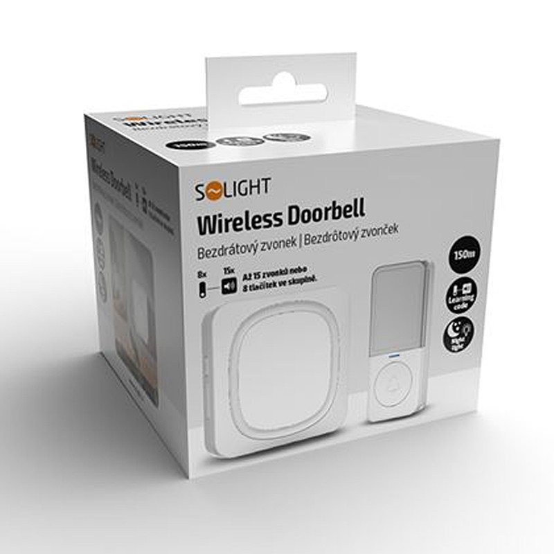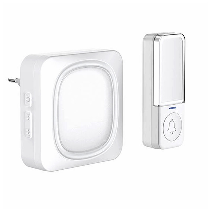 Bezdrôtový zvonček s dosahom 150m a rozmerné nočné svetielko - do zásuvky • farba: biela • funkcia párovania viacerých zvončekov a tlačidiel Learning code